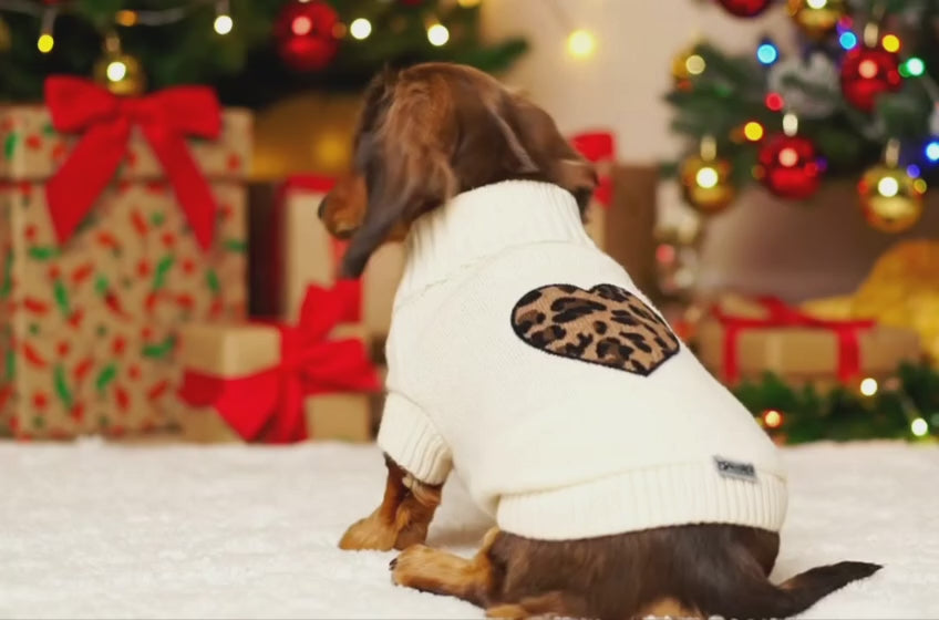 Maglioncino per cani Posh Beige con Cuore Leopardato