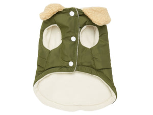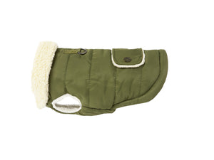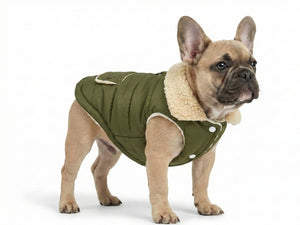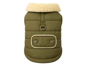 Olivgrüner Wintermantel für Hunde mit Sherpa-Futter – warm, wasserdicht und verstellbar