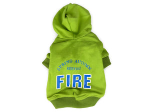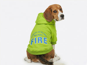 Verleihen Sie Ihrem Hund Stil und Komfort mit diesem einzigartig designten Hoodie. Aus weicher Baumwolle gefertigt, eignet er sich perfekt für Spaziergänge in der Übergangszeit. Die petrolgrüne Farbe hebt den „FIRE“-Schriftzug auf der Rückseite hervor und sorgt für einen auffälligen und trendigen Look.
