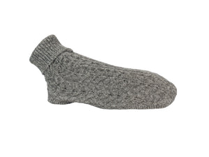 Dieser graue Wollpullover mit Zopfmuster ist perfekt für kalte Tage und Winterspaziergänge.