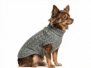 Pullover für Hunde aus grauer Wolle – weich und warm mit Zopfmuster