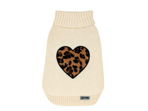 Schicker beigefarbener Hundepullover mit Leopardenherz
