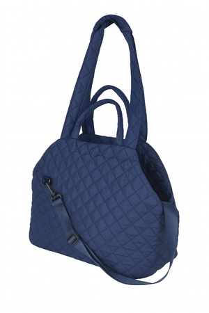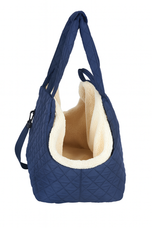 Dog Carrier Bag in Blue Quilted Fabric with Soft Plush Interior